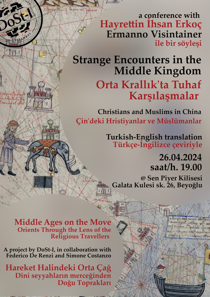 ‘Hareket Halindeki Ortaçağ‘ konferans serisinin beşinci randevusunda Ermanno Visintainer Ortaçağ’da Hıristiyanların Çin kültürüyle nasıl temas kurduğunu, Hayrettin İhsan Erkoç ise aynı dönemde Müslümanların Çin kültürüyle nasıl temas kurduğunu anlatacak. Konferansta siyasi ve askeri konulardan ziyade kültürel konulara odaklanılacak.